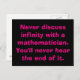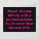 Ne discutez jamais d'infini avec un mathématicien. Vous n'entendrez jamais la fin.