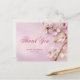 Cartes postales élégantes en Merci de mariage en fleurs de cerisier avec texte personnalisable - vous pouvez changer le texte (noms, dates...), imprimé sur arrière - plan rose.