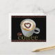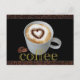 Ce design présente une photo d'un latte de mousse avec un coeur chocolat saupoudré sur le dessus. Le texte dit café, et il y a une bordure de fèves de café en haut et en bas.
