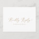 Cette délicate calligraphie or simple carte postale RSVP est parfaite pour un mariage moderne. Le design minimaliste romantique présente une belle et élégante typographie de champagne jaune doré sur un arrière - plan blanc au look épuré et simple.