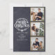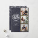 Un design de vacances bohème élégant en collage de 3 photos pour que vous puissiez le personnaliser avec vos photos préférées dans des cadres dorés, message, noms et année sur un fond de tableau noir. Le verso présente des flocons de neige qui tombent sur un fond de tableau noir assorti. Conçu par Thisisnotme©