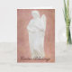 Ici nous avons une belle statue d'ange sur un arrière - plan peint en mauve. Le texte à l'intérieur de la carte dit : "Avec cette carte, je voudrais vous souhaiter, ainsi qu'à vos proches, une Pâques heureuse. J'espère que vous avez une journée bénie et joyeuse." et peut être customisé pour votre destinataire.