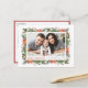 Joyeux Noël! Envoyez vos souhaits et vos salutations de vacances à votre famille et à vos amis avec cette carte postale de Noël florale personnalisable. Il comprend des pinecones aquarelle, des aiguilles de pin, des saints, des baies et des poinsettia. Personnalisez en ajoutant des noms, des messages et une photo horizontale. Cette carte postale vintage florale de vacances est disponible dans d'autres cartons.