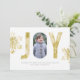 Le J et le Y dans le mot JOIE est une aquarelle d'or de faux et l'O montre votre photo. Le dos de la carte est un motif de polkadot d'or. Éléments utilisés dans ce ©StudioDenmark de conception + ©DelightClipart. Studios de Storytree de © de photographie, Stanford, CA