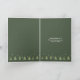 Cette carte de voeux de Noël moderne présente un bel agencement d'arbres de Noël stylisés et de flocons de neige en vert clair sur un arrière - plan vert mousse foncé. Le texte "Happy Holidays" en option sur le devant et un modèle ont été fournis pour ajouter un message personnel à l'intérieur, où un mignon motif d'arbres borde le bord inférieur. Faites une recherche ID861 à ID864 pour voir d'autres options de couleurs et d'autres produits dans cet ensemble moderne de design de Noël.