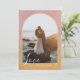 Cette carte de vacances moderne comprend une seule photo verticale encadrée dans une belle arche. L'arrière - plan a une texture riche et peinte dans des couleurs chaudes rose et or. Personnalisez cette carte à plat avec un accueil personnalisé, texte de script, nom, année et photo verticale sur le devant. Choisissez parmi un large éventail de types de papier. Sélectionnez la carte rectangulaire de 5 po x 7 po ou ajoutez une forme de bordure de teinture coupée. Des éléments correspondants sont disponibles. Parfait pour un carte photo de Noël, de vacances ou de mariage à partager avec sa famille et ses amis.