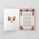 Jolie carte de Noël de style victorien, avec deux Nounours habillés dans leur finition de Noël. L'ours garçon enveloppe un cadeau et l'ours fille tient un biscuit Gingerbread. La carte est encadrée de rideaux hissés et de guirlande à feuillage persistant. Le texte à l'intérieur est un poème original.