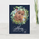 Envoyez des voeux et des salutations chaleureux à vos proches avec cette carte de vacances photo joli, élégante et festive avec "Joyeux NOËL" en élégante calligraphie manuscrite avec un cadre de couronne d'eucalyptus avec un assortiment de feuillage vert. Reverse pour révéler une belle flocons de neige blanche en arrière - plan bleu bébé doux. Souhaitez-vous à tous un Joyeux Noël et Bonne Année!