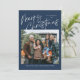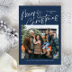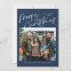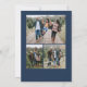 Blue Merry Christmas Calligraphy Script 4 Photo Holiday Card propose un script de calligraphie moderne sur le devant, avec une photo et trois photos sur le dos.