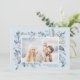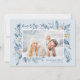 Cette carte de vacances simple et élégante d'inspiration nature présente votre photo horizontale ou paysagère préférée, ornée aux coins de branches de gracieuses aquarelles bleues glacées. "Merry" apparaît en haut à gauche dans un script manuscrit chic, avec vos noms et l'année en bas à droite. Un design botanique élégant pour vos salutations de Noël 2021.