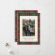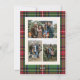 Budget Classic Plaid Four Photo Christmas Card présente un cadre traditionnel rouge et vert plaid, avec une seule photo à l'avant et trois photos à l'arrière.