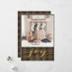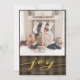 Envoyez des voeux de vacances personnalisables et personnalisés à vos amis, collègues et famille dans des cartes de style simple, chic, élégant et moderne design photo festif, naturel minimaliste! Une belle calligraphie dorée de cadres " joy " sur le fond de votre photo en face. Ci-dessous, la calligraphie présente votre message de bienvenue personnalisé de votre nom de famille dans la typographie moderne. Reverse pour révéler un bel arrière - plan motif plaid brun foncé.