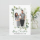 Design minimaliste Élégance Calligraphie Stylo Encre manuscrit Joyeux Noël Photo Carte de vacances inclut Elégant Aquarelle Verdure & Eucalyptus Feuilles. Script vert.