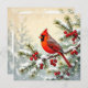 A pretty red cardinal sitting on a snowy pine branch with red berries. A sweet Christmas card that you can add your own personalized message to on the back. A calm vintage feeling on a nostalgic snowy winter day.