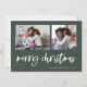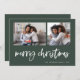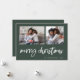Cette simple carte de vœux familiale verte et blanche classique présente une typographie moderne et décontractée qui dit "Joyeux Noël", avec une grille de deux photos sur le devant pour une conception de vacances élégante, moderne et minimaliste.
