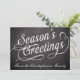 Slate gray chalkboard with erased effect, and white swirly text with "Season's Greetings", Reminiscent of the classroom blackboard with a touch of class and elegant style.