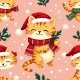 Motif sans couture de chat de dessin animé avec des chapeaux et des écharpes rouges, dormant et sautant, avec du gui et des flocons de neige sur fond rose