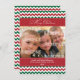 Un motif chevron aux couleurs de Noël rouge et vert fait une déclaration audacieuse sur ce salut. Joyeux Noël est écrit dans une calligraphie ornée au-dessus d'une photo customisée. Ajoutez les noms et l'année ou d'autres textes dans le panneau rouge à rayures ci-dessous. Disponible en couleurs alternatives avec des produits correspondants.