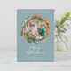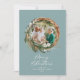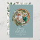 Courbe de feuillage minimale moderne Joyeux Noël script vacances 1 photo carte de Noël. L'eucalyptus peint à la main, le feuillage minimal et la couronne de rotin rustique moderne donnent à cette carte de vacances une atmosphère luxueuse. Dans les verts, les bruns, les gris et le bleu poussiéreux.