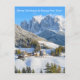 Carte de Noël montrant un petit village avec une église dans la neige avec des montagnes alpines en hiver. Le texte est Joyeux Noël & Bonne Année!
