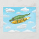 Le crocodile vert vole haut dans le ciel en utilisant sa fusée dorée rapide.