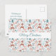 Carte postale de Noël avec un adorable motif de Noël. Joli cerf d'hiver avec des bois qui défilent autour d'une forêt d'arbres et d'herbes.