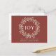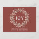 Elégante carte postale moderne et rustique. Couronne graphique en beige avec JOY en blanc avec une carte postale rouge rustique. Customisez le dos ou supprimez le texte d'un message manuscrit.