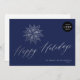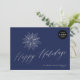 Classy élégant faux flocon de neige minime argent et script Happy Holidays marine bleu affaires carte de vacances d'hiver d'entreprise. Facile à personnaliser avec le logo, le nom et le texte de votre entreprise des deux côtés.