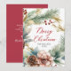 Élégant Script de calligraphie moderne Aquarelle Botanique Verdure Wreath Noël Non Photo Cartes de Noël. Ce Carte de fin de année de Noël festif présente une couronne d'aquarelle avec branches de pins, baies rouges et pinecones. Avec un texte de salutation "Joyeux Noël" qui est écrit dans un texte de police à la main assez aéré en rouge. Sur l'arrière - plan rouge à l'envers avec un message pré-fait. Ces cartes de Noël personnalisées et festives sont une excellente façon de rappeler à ceux que vous aimez que vous y pensez cette saison des Fêtes d'hiver.