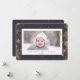 Script moderne Blue élégant Snowflakes Bokeh Minimalist Holiday Card. Envoyez des salutations de vacances personnalisables et personnalisées à vos amis, vos collègues et votre famille en cartes photos simples, minimalistes, élégants, amusants, festifs et modernes ! Un beau cadre de variété de flocons d'hiver dorés sur arrière - plan vert sauge entoure votre photo. Le message de bienvenue "Joyeux Noël" est écrit en calligraphie élégante, et ci-dessous présente votre message de bienvenue personnalisé de votre nom de famille dans la typographie moderne. Reverse pour révéler une belle les flocons de neige d'hiver d'or complet sur l'arrière - plan motif vert sauge.