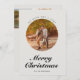 Cette élégante carte à deux faces de Noël dispose d'une typographie script moderne et d'un cadre photo circulaire. Insérez vos photos préférées et customisez-les à votre goût. Photos de prostooleh / Freepik.