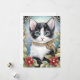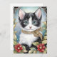 Cartes Pour Fêtes Annuelles Fancy Tuxedo Chat Winter Flora Frame