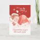 L'illustration de cette adorable carte "Félicitations, c'est un garçon" représente un bébé garçon mignon endormi sur des nuages blancs duveteux. Conçue spécialement pour les garçons nés pendant la saison de Noël, la carte est principalement de couleur rouge avec un brin de houx et le bébé porte un petit chapeau de Père Noël rouge. Il est blotti sous une douce couverture rouge avec un petit ours en peluche à ses côtés et le doux poème à l'intérieur fait référence au fait que c'est son tout premier Noël.