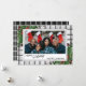 Unique, classique, tendance, jolie et décorative Carte de vacances. Joy Holidays salue le texte et l'espace pour customiser ou personnaliser avec une photo, nom de famille (ou noms individuels) et message de votre choix. encadré de baies rouges de vin de Bourgogne et de bouquets de fleurs vert foncé sur un élégant cottage de campagne français noir et blanc en vichy vérifiez l'arrière - plan.
