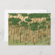 Carte postale de vacances Forêt dessinée à la main avec pins et lapins