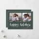 Ce carte photo de vacances familial classique et classique, vert et blanc, présente une typographie de style décontracté et moderne qui dit "happy holiday", avec une grille de deux photos à l'avant pour un design de vacances élégant, moderne et minimaliste.
