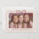 Cute whimsical holiday card with a burgundy and blush colored hand drawn bow frame design - customizable with your favorite photo and space for a personal message to your loved ones on the reverse side.