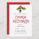 Utilisez cette belle carte de Noël Cookie Exchange pour organiser votre fête de Noël. Il présente un texte de script amusant moderne qui dit "Cookie Exchange" et une aquarelle festive de baies. Le dos est assorti d'un rouge de Noël festif avec des points jaune pâle. Un design parfait pour votre carte d'invitation de Noël de vacances.