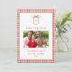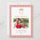 Capturez l'esprit de la saison avec cette charmante carte de voeux rétro de Noël avec une mignonne bordure rouge et blanche en vichy plaid. Une belle aquarelle peinte à la main et dotée d'une crête monogrammée avec arc ajoute une touche d'élégance personnalisée. Customisez-le avec la photo initiale de votre famille et une photo chère pour un design mignon et preppy qui reflète leur charme du Sud.