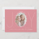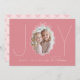 JOIE Simple Pink Bow Wavy Retro Photo Holiday Card. Un design moderne doux et simple. La photo sera recadrée sur le cadre ondulé et encadrée d'une jolie bordure dessinée à la main et d'un arc simple pour représenter le "O" dans "JOY". Personnalisez le modèle avec l'année, le nom de famille et la photo. Le dos de la carte est un motif arc sans couture correspondant. Montré dans une palette rose monochromatique MAIS TOUTES LES COULEURS SONT ÉDITABLES. Sélectionnez les couleurs qui complètent votre photo. © Kimbellished, LLC