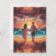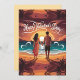 Une scène romantique se déroule alors qu'un couple se tient la main sur une plage ensoleillée. La caméra balaie doucement la scène depuis une vue large, capturant le coucher de soleil vibrant qui jette des teintes chaudes sur le ciel et se reflète sur les vagues. Alors qu'ils regardent l'horizon, la caméra fait lentement le tour d'eux, montrant le doux clapotis des vagues et le doux bruissement des feuilles de palmier. L'atmosphère est remplie d'amour et de tranquillité, renforcée par une palette de couleurs pastel. La scène se déroule en douceur, évoquant un sentiment de chaleur et de connexion, parfait pour une célébration de la Saint-Valentin.