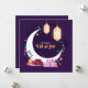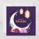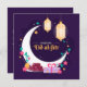 Custom Modern Elegant violet Eid al-Fitr Moubarak cartes de voeux Il est caractérisé par un grand croissant décoré de fleurs, lanternes et cadeaux. vous pouvez créer des cartes Eid Moubarak Eid Moubarak souhaite célébrer Eid avec vos proches.