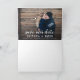 Ce carte photo plié moderne et fantaisiste sert aussi de carte d'enregistrement pour le couple nouvellement engagé. L'avant met en évidence vos photos avec des flocons de neige dessinés à la main et de la typographie lettrée qui dit "Joyeux Baisers et Chaleureux voeux de vacances du Bientôt être M et Mme" en rouge avec un arrière - plan blanc. Le top intérieur agit comme la date de sauvegarde, avec une photo complète avec vos détails de sauvegarde de la date. Le fond intérieur est vide pour ajouter votre propre note, et vous pouvez ajouter une photo supplémentaire au fond.
