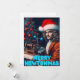 Image de Sir Isaac Newton posée sur une chaise à côté d'un grand arbre de Noël élaboré, avec l'expression "Joyeux Newtonmas". Newtonmas est le moment de donner des dons de connaissance et de science, et la célébration parfaite pour les athées.