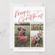 Joyeux Noël Calligraphie Script 3 Photo Plaid Holiday Card présente un script de calligraphie moderne sur le devant, ainsi que trois photos, et une plaid de Noël festif sur le dos.
