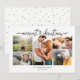 Carte de vacances simple et moderne en collage de 5 photos avec un script fantaisiste mignon disant JOYEUX NOËL avec un lien de cœur manuscrit. Espace pour vos 5 photos de famille préférées et message. Au dos se trouve un motif de points minimaliste dessiné à la main.