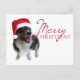 Une belle carte postale de vacances pour les amoureux de les chiens, avec un adorable corgi pembroke en forme de pembroke portant un chapeau de santa rouge. Joyeux Noël est écrit en rouge à côté de la jolie photo.