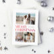 Cette carte de Noël en 3 photos présente un style simple et sombre dans les tons rouge et rose sur un arrière - plan blanc. Il a une grande photo, et 2 petites photos sont sur le devant. L'arrière de la carte a un solide dégradé rouge et rose.