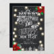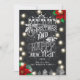 Black White Red & Green Holly Joyeux Noël & Joyeuse Typographie du Nouvel An Fête de Noël Carte Bokeh String Lights.