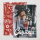 Joyeux Noël Retro Script Typographie Photo Carte de vacances | Envoyer les voeux de Noël à la famille et aux amis avec cette carte de séjour photo personnalisable. Il présente un script rétro "Joyeux Noël" avec un motif festif rouge et blanc. Customisez la carte en remplaçant le motif par une autre photo ou toute image que vous souhaitez.